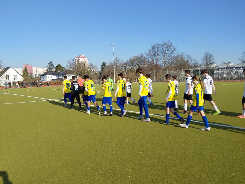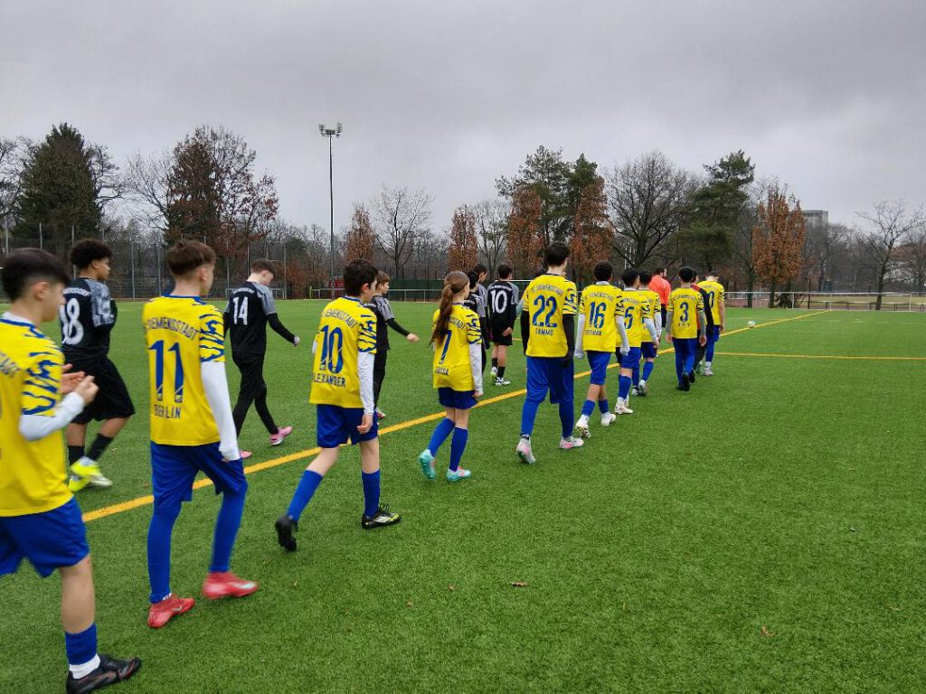 7. März. Sagen wir es mal so: Hätten wir nicht eine mutlose erste Halbzeit hingelegt – wir Trainer würden durchaus hadern mit diesem Spiel-Ausgang. So können wir wenigstens sagen: Ein bisschen sind wir schon auch selber schuld… Wir unterlagen im Duell Dritter beim Ersten dem FC Stern Marienfelde mit 2:5. Wie gesagt: Zur Halbzeit stand es zurecht 2:0 für die Gastgeber, weil wir gar nicht ins Spiel fanden, es fehlte der Mumm. Dann aber verkürzten wir nach der Pause jeweils auf 1:2 und 2:3 – man kann sagen: Es war die Phase, in der wir richtig am Drücker waren und dem Ausgleich sehr nahe. Bis, ja bis uns mehrere Fehlentscheidungen aus der Bahn warfen. Unter anderem gab es in dieser Partie zwei Abseitstore gegen uns – das eine davon war glasklar. Entscheidend (der Knackpunkt) aber war, dass wir beim Stande von 2:3 eine Rote Karte bekamen, die man nur mit einem Wort bezeichnen kann: unfassbar. Selbst Eltern der Gastgeber kamen hinterher zu uns und drückten uns und dem betroffenen Spieler das Mitgefühl aus. Der Ball wurde bei einer hohen Flanke von unserem Spieler an den eigenen Arm geköpft. So leicht, dass er es selbst ganz offenkundig gar nicht merkte. Verhinderung einer klaren Torchance, letzter Mann – nichts davon traf zu. Alles auch noch weit außerhalb des Strafraums. Selbst Gelb hätten wir hier schon als zu hart empfunden – Rot ist absurd. Aber: Wir können es nicht ändern, Fußball ist eben nicht immer gerecht und (junge) Schiedsrichter sind auch nur Menschen. Nehmen wir das Positive raus: Grundsätzlich waren wir bis zu diesem Zeitpunkt aus unserer Sicht in Halbzeit zwei sogar besser als die Gastgeber – und haben so einmal mehr gezeigt, dass es allenfalls Nuancen sind, die andere Teams in dieser Liga besser machen. Siemensstadt heute: Anil – Tammo, Louisa, Koray, Ylias, Tom, Alexander, Sabur, Bilal, Said, Ousman, Majd, Enzo, Robert, Tyran, Yigithan.