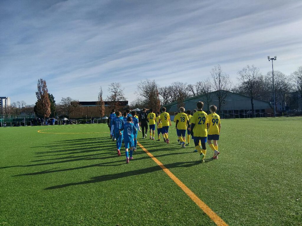 22. Februar. Eines vorneweg: Ein bisschen viel Gelb ist vielleicht drin (für das Empfinden eines Schalkers) – aber ansonsten sehen die neuen Trikots des Vereins, der damit alle Teams ausgerüstet hat, sehr gut aus. In der Rückennummer ist das Vereinslogo integriert, und manches Kind hat bei uns auch sein eigenes, personalisiertes Shirt bekommen. Eingeweiht haben wir den neuen Trikotsatz mit einem Sieg. Die 3. C des 1. FC Wilmersdorf war (nach der erneuten, unverständlichen Generalabsage) bei uns zu Gast – auf grünem Rasen. Grüner geht es nicht. Ich vermute mal, alle Kunstrasen in Berlin waren am Wochenende schnee- und eisfrei. Bisweilen fragt man sich, ob sie beim BFV keine Wetter-App haben. Kurz zum Spiel, das wir im Grunde übe die komplette Spielzeit dominierten. Erneut fanden sich die Spieler im neuen System prima zurecht, wenn es etwas zu bemängeln gibt, dann die Anzahl der erzielten Tore – zumindest mit Blick auf die zahlreichen Chancen. Schon zur Pause hätten wir deutlich höher als nur mit 1:0 führen müssen. Der Gegner konnte sich kaum eine Torgelegenheit aus dem Spiel heraus erarbeiten, steckte aber nie auf, kämpfte sehr verbissen (weshalb es auch aufgrund der Körperlichkeit für uns ein guter Test war) und kam durch einen Sonntagsschuss in den Winkel noch zum 1:3. Das war der Endstand an einem regenreichen Sonntag, bei dem aber das Spiel die Herzen der Zuschauer durchaus zu erwärmen wusste. Siemensstadt heute: Anil, Louisa, Ylias, Said, Sabur, Bilal, Tammo, Koray, Tom, Majid, Alex, Ousman, Zain, Clifford, Ismail.